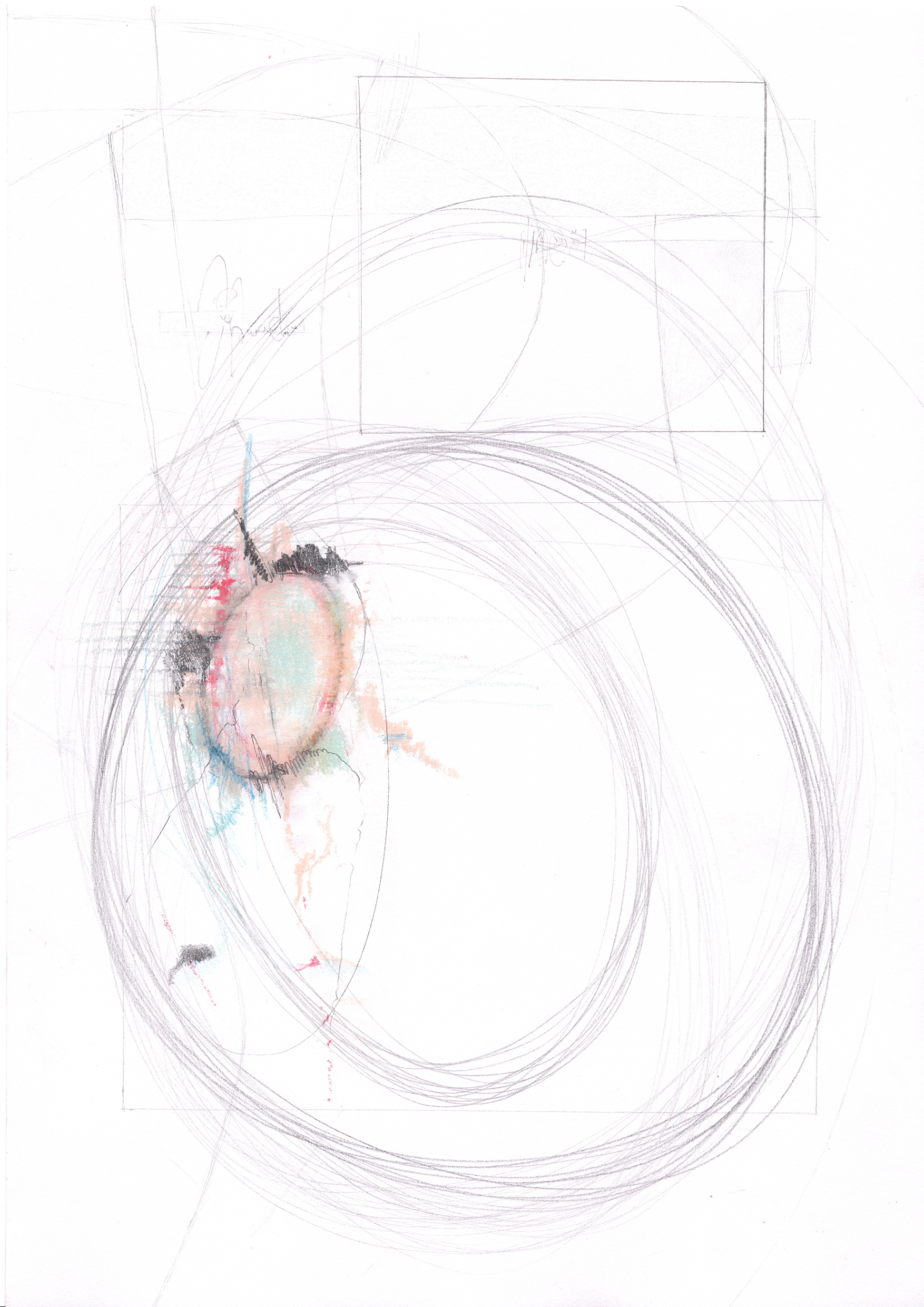 Some drawings more explicitly abstract away from figurative traditions to achieve this, while others occupy an uneasy terrain wherein forms and lines intersect in unexpected ways.